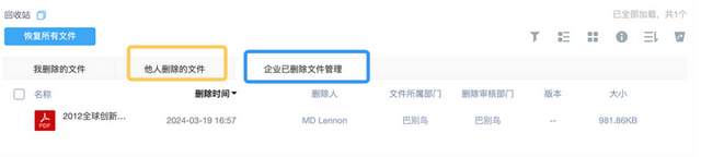 这个真的容易被忽视但相当重要,删库跑路,文件误删都需要一个关卡来把守。多级回收站可以做到文件即使被删除清空回收站了,也能在管理员回收站找到被删除的文件并恢复。这样可以有效防止重要文件丢失。