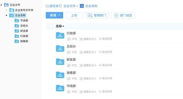 所以文件管理结构的根部门一定是企业本身,然后一级文件夹应该都是部门,二级文件夹是子部门….