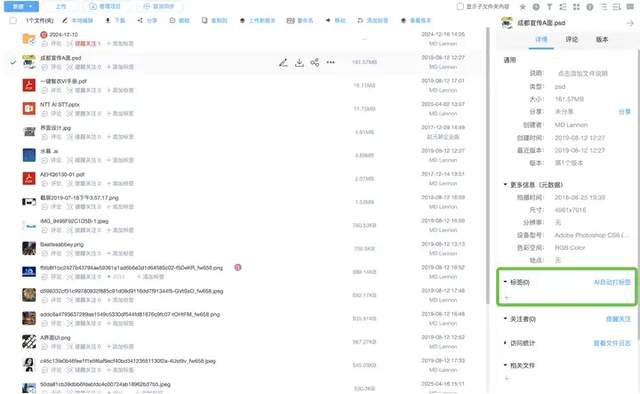 巴别鸟企业网盘从设计之初就是为设计师群体设计的(因为最早就是针对设计师讨论图稿设计的协同产品),所以媒体管理能力本来就强大,配合AI以后,巴别鸟企业网盘更是能提供超越DAM的素材管理体验。