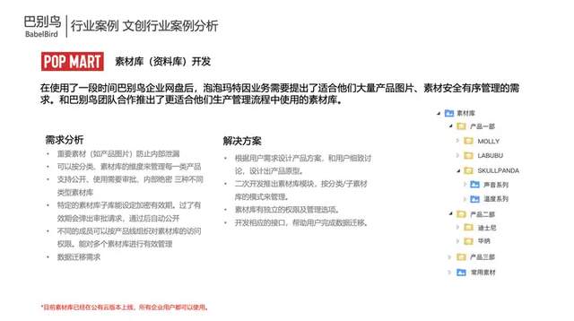 所以我们联合泡泡玛特,研发了巴别鸟的素材库模块。可以体系化的管理素材。