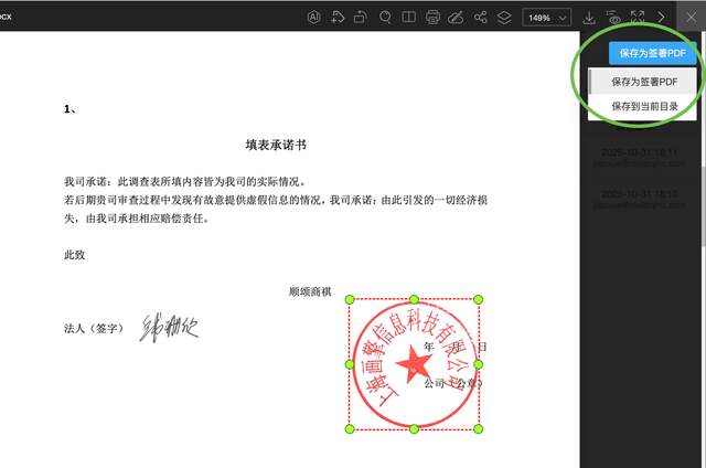 选择保存到当前目录,会在文件所在的云端目录保存一个已签署的PDF文档