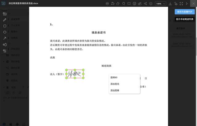 保存需要把文件平面化并且加密生成带签章的PDF,所以时间有点长,请耐心等待
