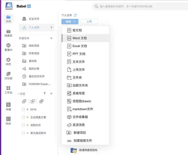 注册后直接点击新建——word文档,当然你也可以上传一个